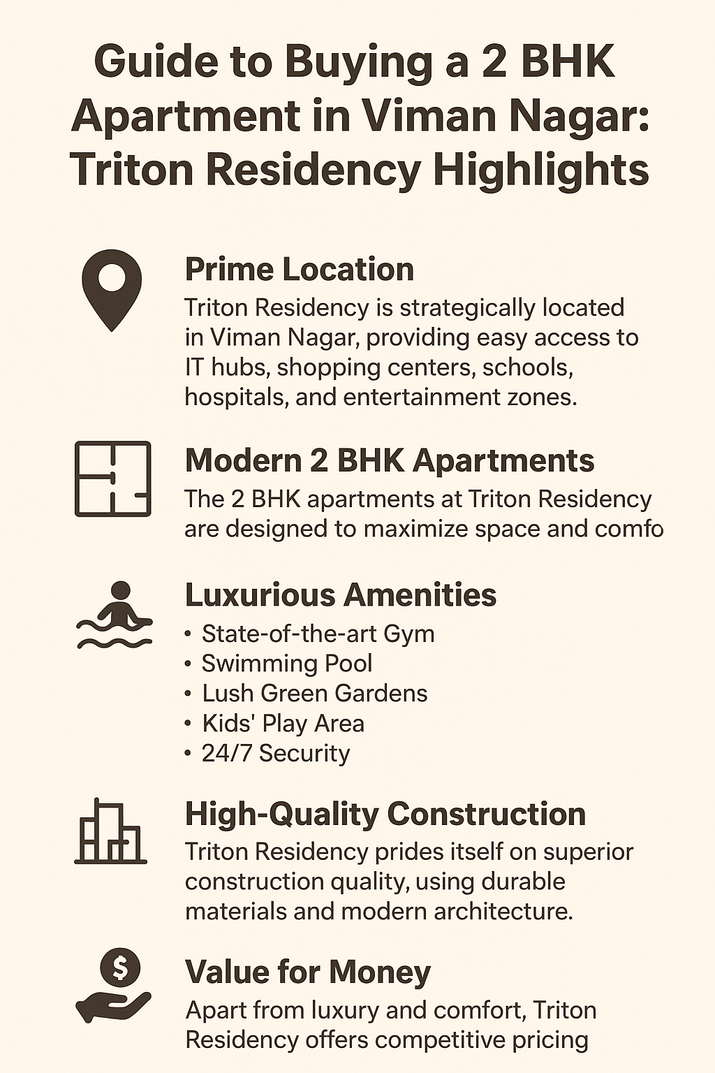Investing in a 2 BHK apartment at Triton Residency means more than just owning a home—it’s about embracing a lifestyle of convenience, comfort, and luxury. With its prime location, modern amenities, and thoughtfully designed apartments, Triton Residency truly redefines urban living in Viman Nagar.