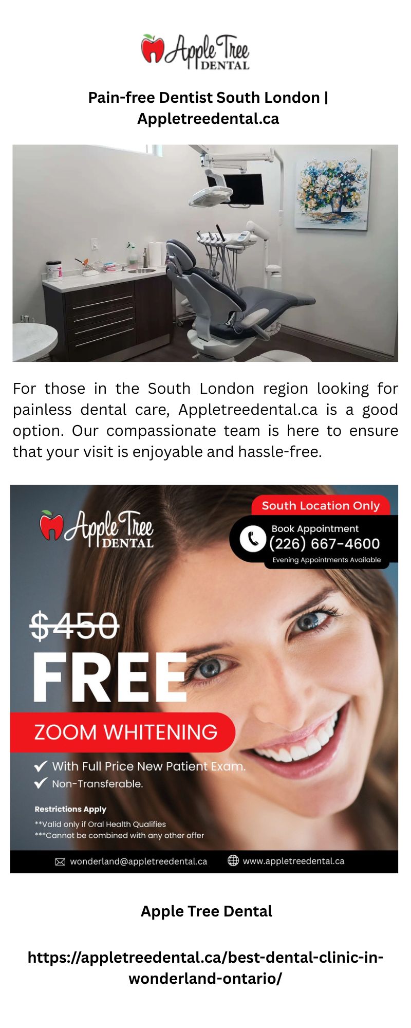 For those in the South London region looking for painless dental care, Appletreedental.ca is a good option. Our compassionate team is here to ensure that your visit is enjoyable and hassle-free.
