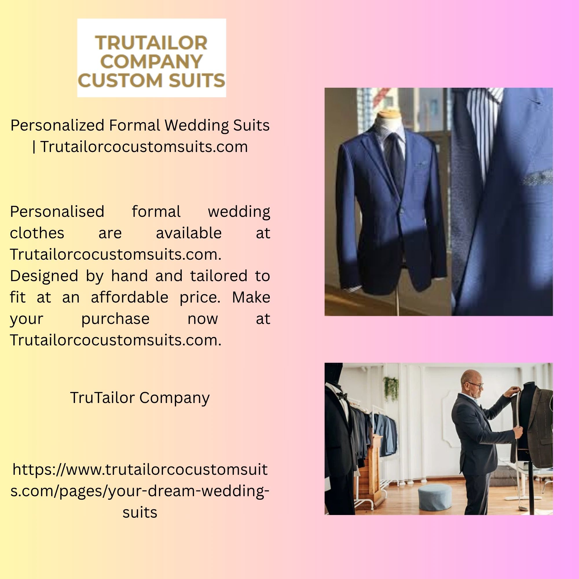 Personalised formal wedding clothes are available at Trutailorcocustomsuits.com. Designed by hand and tailored to fit at an affordable price. Make your purchase now at Trutailorcocustomsuits.com.