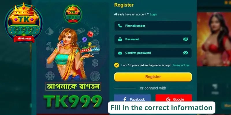 - Action: Check the box confirming your acceptance of the TK999 Terms and Conditions and Privacy Policy. Consent to these rules is mandatory to finalize the TK999 Account Create.