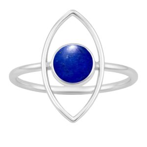925 Sterling Silver lapis Lazuli Evil Eye Round Gemstone Ring